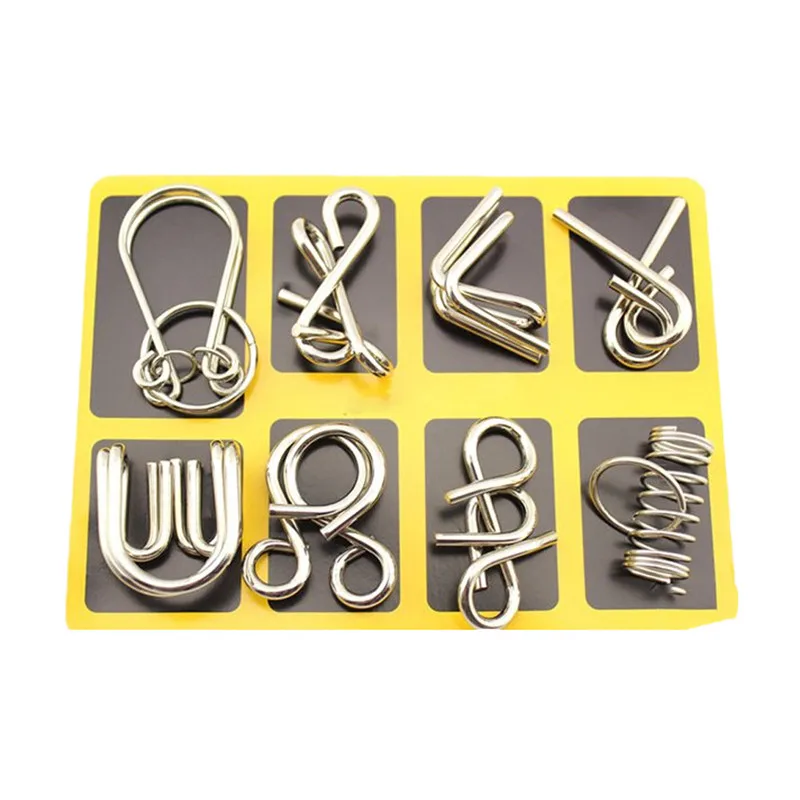 8Pcs/Set Metal Chinese Puzzle Rings Nine Ring Interlocking Set Links Mini Size Kids Educational Toys Adult Children Board Game